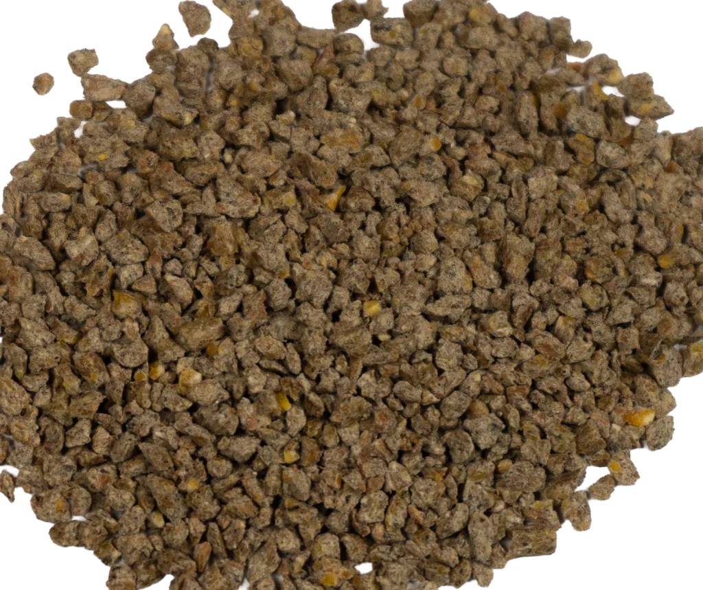 Corn, Wheat Middlings, Soybean Meal, Calcium Carbonate, Corn Distillers Dried Grains with Solubles, Rice Bran, Alfalfa Meal Dehydrated, Animal Protein Products, Monocalcium/Dicalcium Phosphate, Soybean Oil, Salt, Saccharomyces cerevisiae, Grape Seed Extract, Tagetes Extract (Aztec Marigold), DL-Methionine, Choline Chloride, Ferrous Sulfate, Manganese Hydroxychloride, Manganese Amino Acid Complex, Zinc Hydroxychloride, Zinc Amino Acid Complex, Vitamin E Supplement, Niacin Supplement, Sodium Selenite, Vitamin A Supplement, Basic Copper Chloride, Copper Amino Acid Complex, Dried Bacillus Licheniformis Fermentation Product, Dried Bacillus Subtilis Fermenta-tion Product, Dried Trichoderma Reesei Fermentation Products (Phytase), Sodi-um Phytate, Riboflavin Supplement, D-Calcium Pantothenate, Folic Acid, Vita-min D3 Supplement, Thiamine Mononitrate, Menadione Dimethylpyrimidinol Bisulfite (source of Vitamin K Activity), Ethylenediamine Dihydroiodide, Pyri-doxine Hydrochloride, Biotin, Vitamin B12 Supplement, Natural & Artificial Flavor Ingredients.
