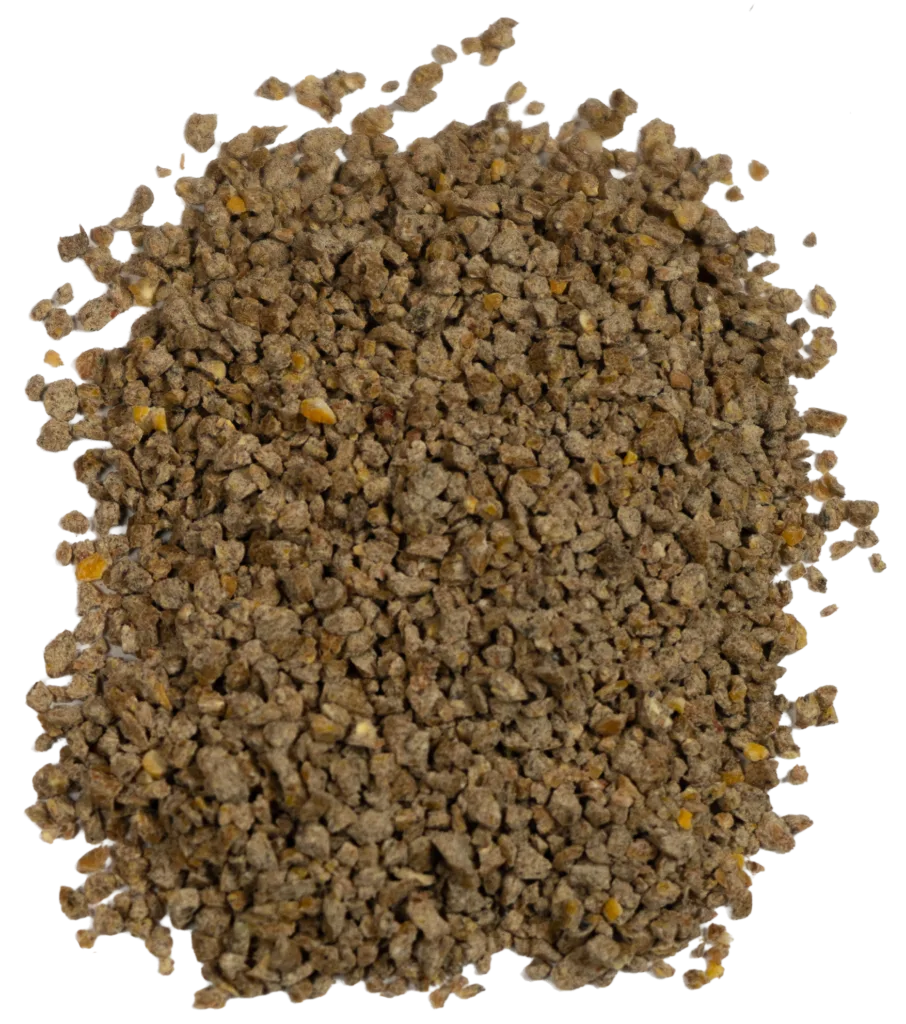 Corn, Soybean Meal, Wheat Middling, Rice Bran, Alfalfa Meal Dehydrated, Animal Protein Products, Calcium Carbonate, Monocalcium/Dicalcium Phosphate, Salt, DL-Methionine, L-Lysine, Saccharomyces cerevisiae, Choline Chloride, Ferrous Sulfate, Manganese Hydroxychloride, Manganese Amino Acid Complex, Zinc Hydroxychloride, Zinc Amino Acid Complex, Vitamin E Supplement, Niacin Supplement, Sodium Selenite, Vitamin A Supplement, Basic Copper Chloride, Copper Amino Acid Complex, Dried Bacillus Licheniformis Fermentation Product, Dried Bacillus Subtilis Fermentation Product, Dried Trichoderma Reesei Fermentation Products (Phytase), Sodium Phytate, Riboflavin Supplement, D-Calcium Pantothenate, Folic Acid, Vitamin D3 Supplement, Thiamine Mononitrate, Menadione Dimethylpyrimidinol Bisulfite, Ethylenediamine Dihydroiodide, Pyridoxine Hydrochloride, Biotin, Vitamin B12 Supplement, Natural & Artificial Flavor ingredients.