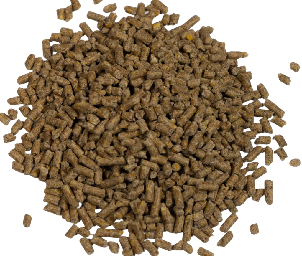 Corn, Soybean Meal, Wheat Middling, Calcium Carbonate, Animal Protein Products, Soybean Oil, Monocalcium/Dicalcium Phosphate, Salt, Dried Citric Acid Presscake, DL-Methionine, Choline Chloride, Flavoring Agent, Dried Trichoderma Reesei Fermentation Products (Phytase), Hydrated Magnesium Silicate, Sucrose, Sodium Phytate, Dried Bacillus Licheniformis Fermentation Product, Dried Bacillus Subtilis Fermentation Product, Sodium Silico Aluminate, Ferrous Sulfate, Manganese Hydroxychloride, Manganese Amino Acid Complex, Zinc Hydroxychloride, Zinc Amino Acid Complex, Vitamin E Supplement, Niacin Supplement, Sodium Selenite, Vitamin A Supplement, Basic Copper Chloride, Copper Amino Acid Complex, Riboflavin Supplement, D-Calcium Pantothenate, Folic Acid, Vitamin D3 Supplement, Thiamine Mononitrate, Menadione Dimethylpyrimidinol Bisulfite, Ethylenediamine Dihydroiodide, Pyridoxine Hydrochloride, Biotin, Vitamin B12 Supplement, Natural & Artificial Flavor Ingredients.