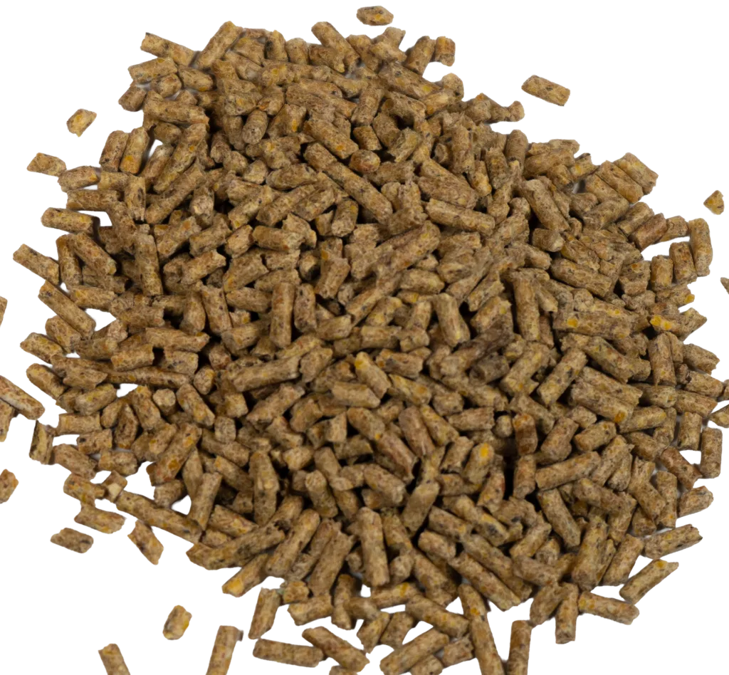 Corn, Soybean Meal, Wheat Middling, Animal Protein Products, Alfalfa Meal Dehydrated, Calcium Carbonate, Soybean Oil, Monocalcium/Dicalcium Phosphate, Salt, DL-Methionine, Dried Citric Acid Presscake, Choline Chloride, Flavoring Agent, Dried Trichoderma Reesei Fermentation Products (Phytase), Hydrated Magnesium Silicate, Sucrose, Sodium Phytate, Dried Bacillus Licheniformis Fermentation Product, Dried Bacillus Subtilis Fermentation Product, Sodium Silico Aluminate, Ferrous Sulfate, Manganese Hydroxychloride, Manganese Amino Acid Complex, Zinc Hydroxychloride, Zinc Amino Acid Complex, Vitamin E Supplement, Niacin Supplement, Sodium Selenite, Vitamin A Supplement, Basic Copper Chloride, Copper Amino Acid Complex, Riboflavin Supplement, D-Calcium Pantothenate, Folic Acid, Vitamin D3 Supplement, Thiamine Mononitrate, Menadione Dimethylpyrimidinol Bisulfite, Ethylenediamine Dihydroiodide, Pyridoxine Hydrochloride, Biotin, Vitamin B12 Supplement, Natural & Artificial Flavor Ingredients.
